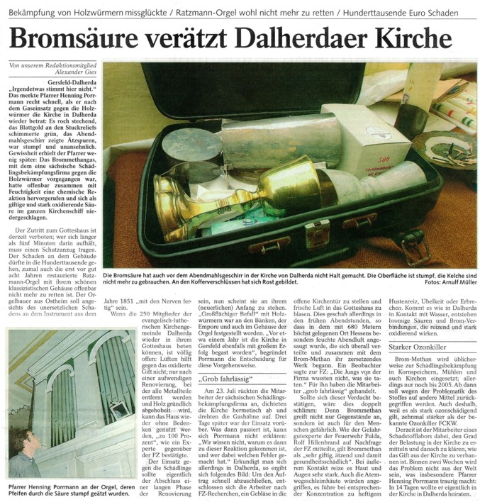 Die Binker Materialschutz GmbH ist an den nachstehenden Schadensfällen in keinster