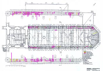 die Schädigungen wurden farblich nach ihrem Schädigungsgrad in einem Grundrißplan