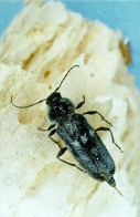 Befällt nur Nadelholz Holzalter bis 80 Jahre Eiablage in Holzrisse ovale Ausfluglöcher Lebenszeit der Larve: 4-7 Jahre in einigen Bundesländern meldepflichtig! Larve frißt täglich das Volumen eines Streichholzes
