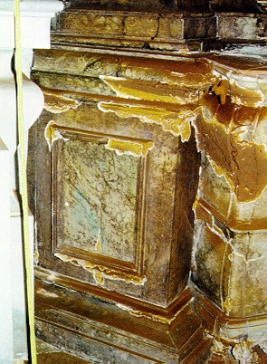 polychromierte Holztäfelungen, Schnitzarbeiten oder Stuckdecken